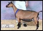 Gloria is one of those stunning does that just make you say wow as she walks into the ring. Her udder attachment is impeccable and she is very smoothly blended throughout. The only thing I would like to change on this doe would be to up her milk production as I prefer heavier milking does. Hopefully that will come with one more freshening. |